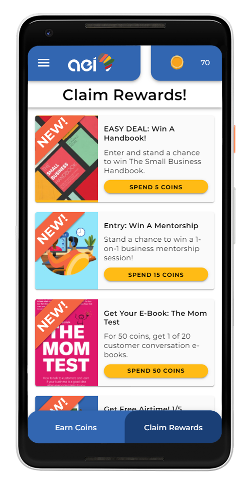 You can learn about the South African business landscape, answer quizzes and earn virtual coins. These coins can be exchanged for great prizes. The prizes include airtime, business books and mentorship sessions.